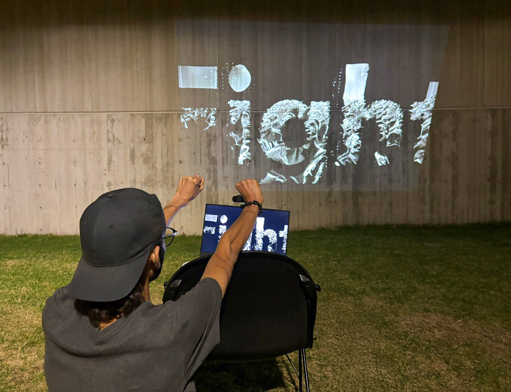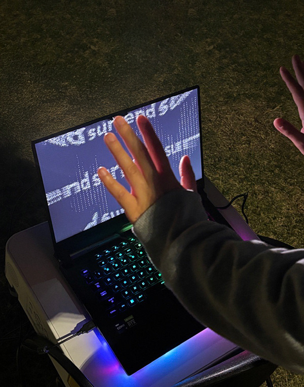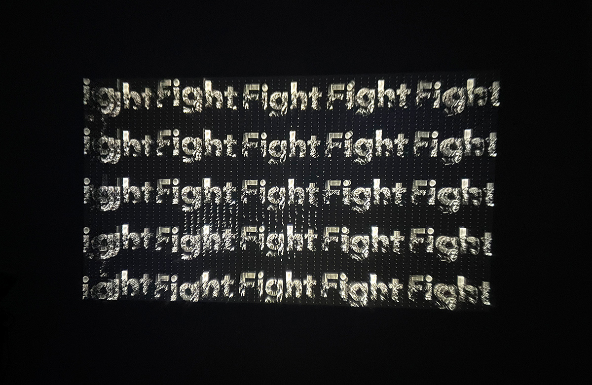 In this interactive projection project, Viewers become part of the message. A digital mirror turns their silhouette into Persian letters, while hand gestures trigger the words “Fight” and “Surrender.” Each interaction controls the typography’s layout and texture, symbolizing emotional states and collective voice.