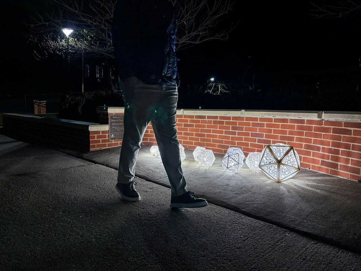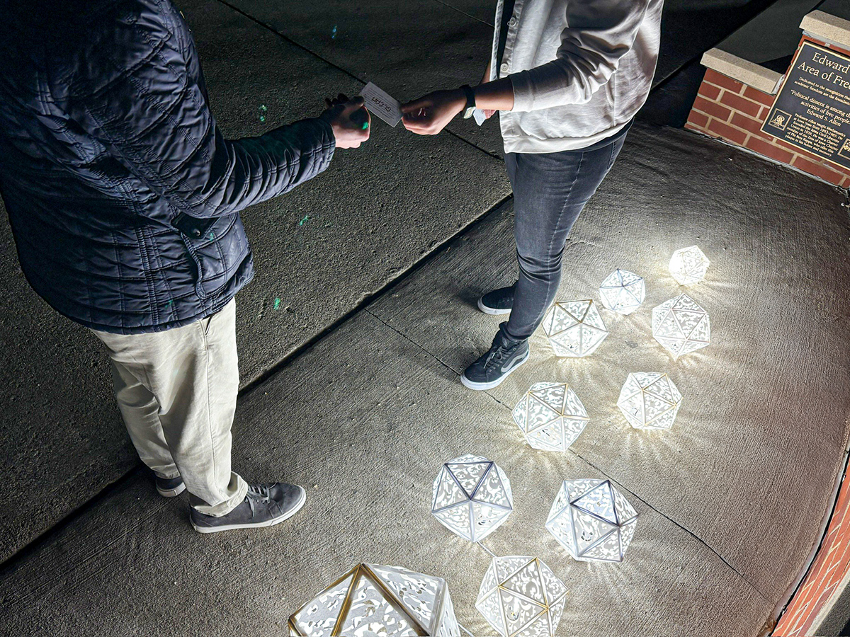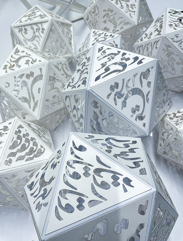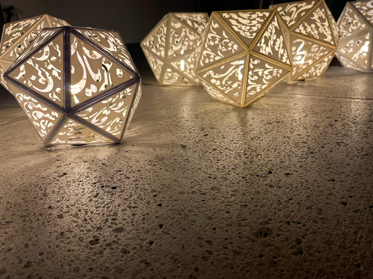 This installation project uses 3D-printed structures and laser-cut face lanterns based on Persian typography and geometry. It draws on the symbolism of shadow as oppression and light as resilience. The lanterns cast typographic shadows using words gathered from Iranian women, creating an emotional, immersive experience.