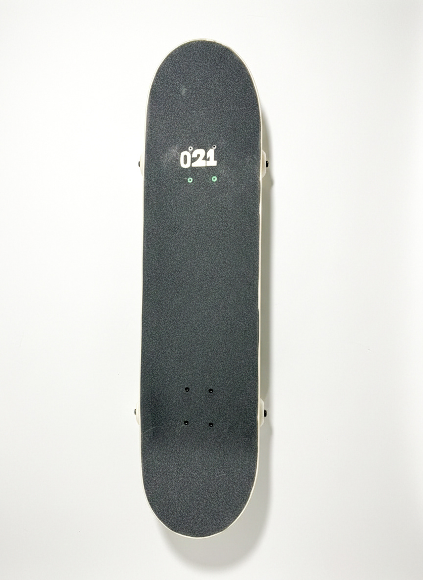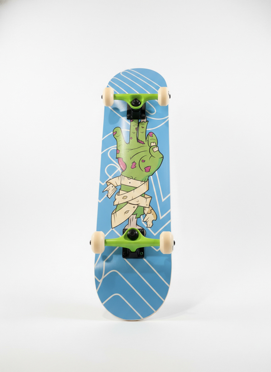 The imagery is presented on a skateboard deck via vinyl printing, a medium rooted in movement, freedom, and resistance to imposed systems. This "zombie-like" aesthetic bridges the rebellious spirit of skate culture with a critique of systemic control.